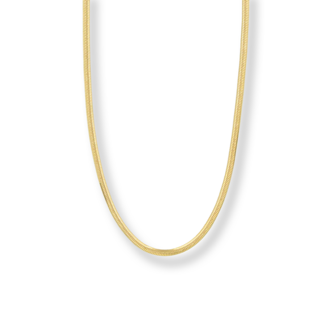 Express your bold and sophisticated style with our 4 MM Herringbone Chain Necklace. Featuring a sleek, flat design that lays beautifully against the skin, this piece exudes effortless elegance.