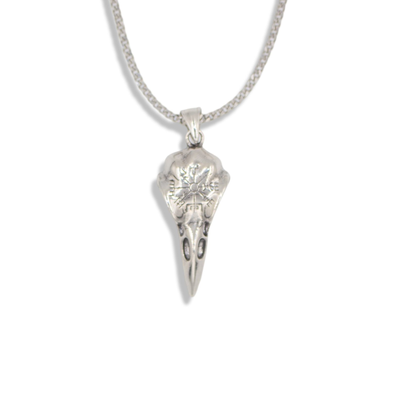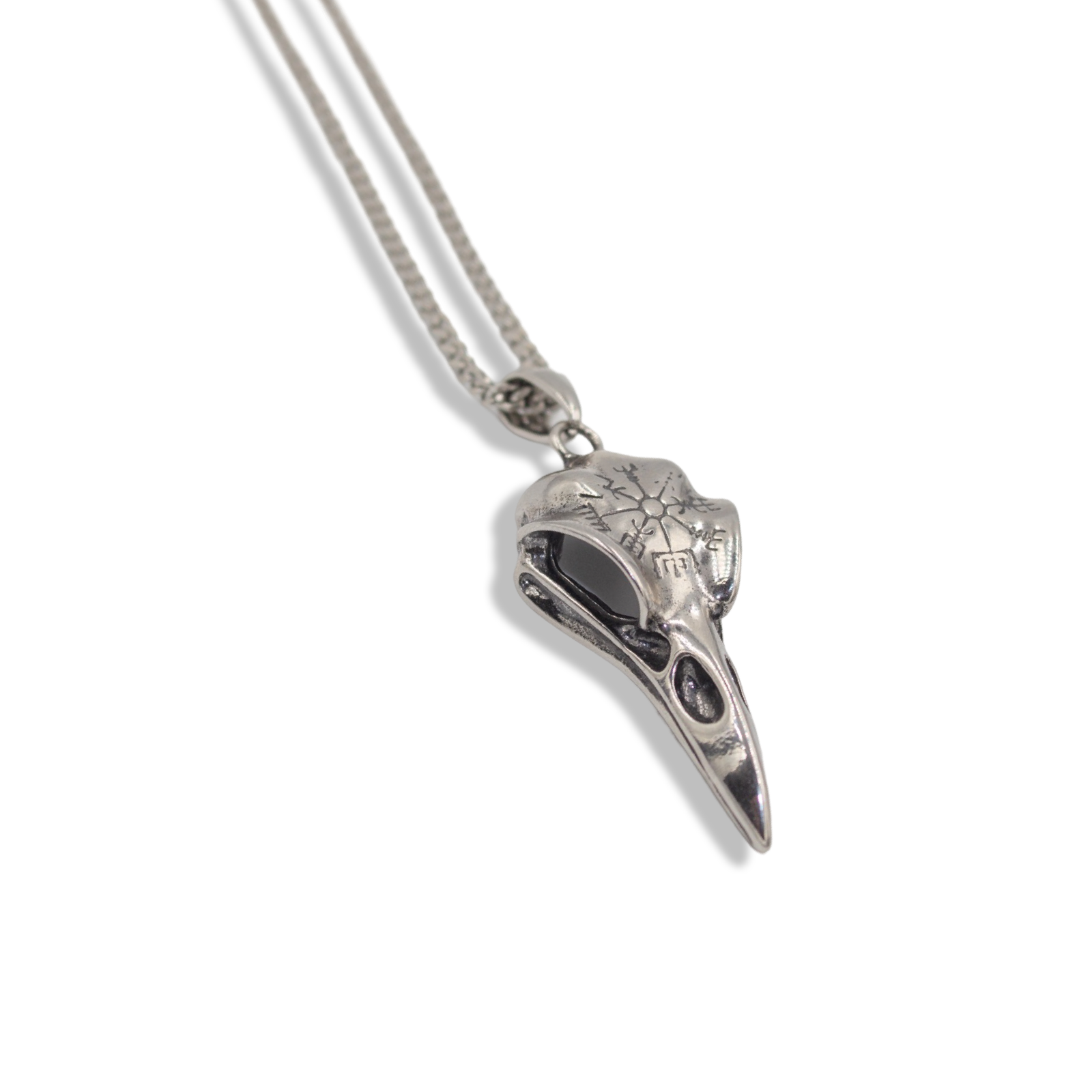 This Raven Necklace is a symbol of wisdom, transformation, and the unseen forces that illuminate our path. Crafted from high-quality stainless steel, this Viking-inspired necklace fuses the mysticism of the crow skull, a creature known for its intelligence and connection to the unknown, with the power of the Vegvísir stave, an ancient Norse symbol meaning "That Which Shows the Way." Warriors once wore the Vegvísir to navigate treacherous seas, ensuring they would never lose their way—even in the darkest storms.