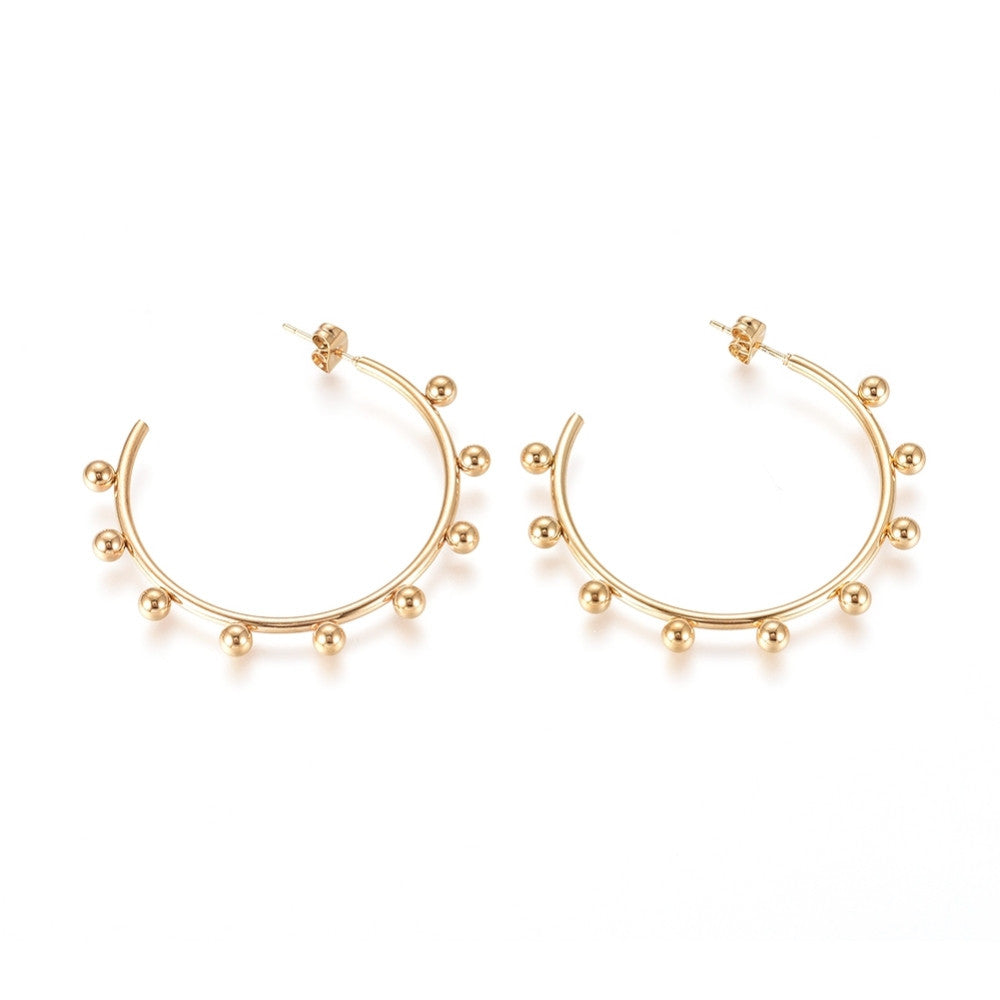 The beaded frame adds a visual interest and makes this pair of hoops an striking addition to your jewelry collection....