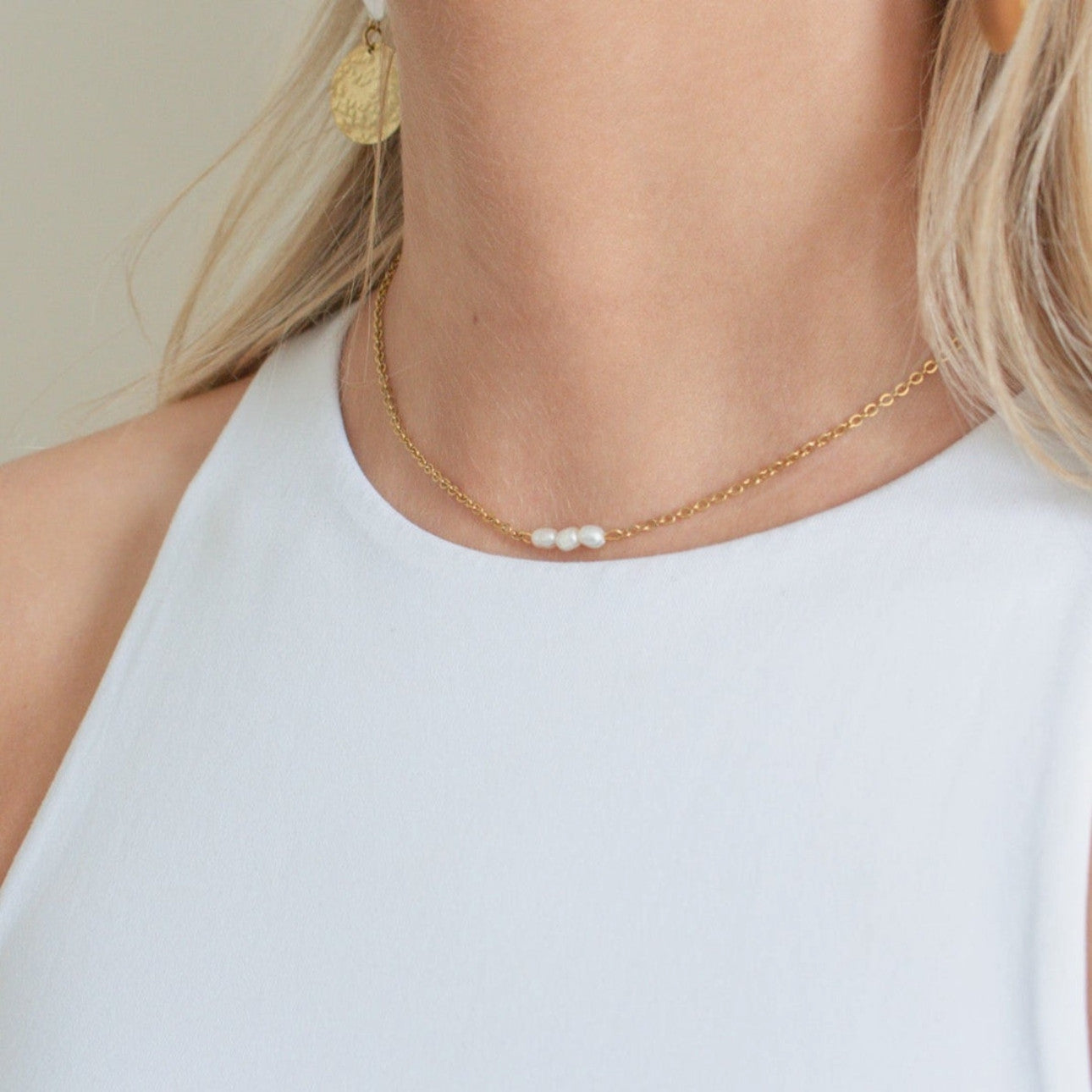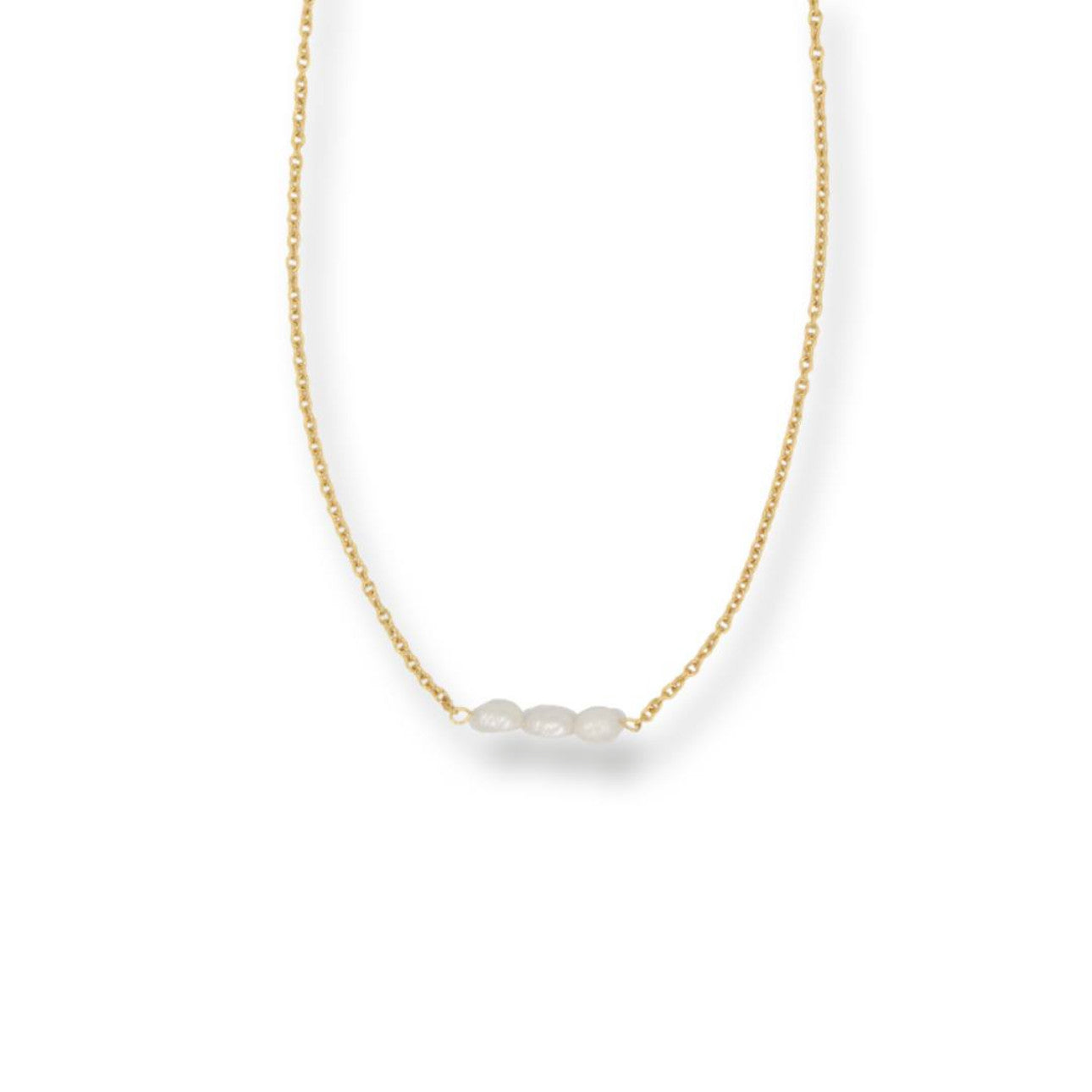 Minimal and timeless. An everyday pearl necklace that is perfectly on-trend. Details: 3mm rice-shaped organic white freshwater pearls.Chain: 1mm cable chain, crafted from...