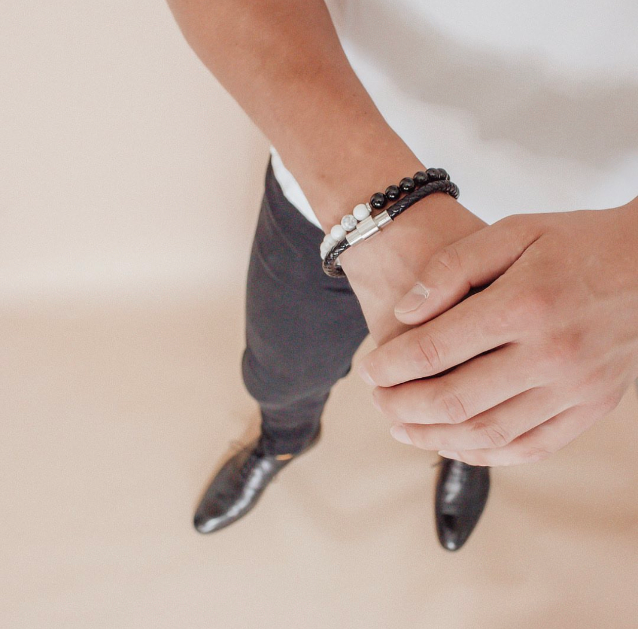 Product Info:Achieve a sense of calm and focus with the Centered Bracelet. Crafted with howlite and onyx stones, it brings...