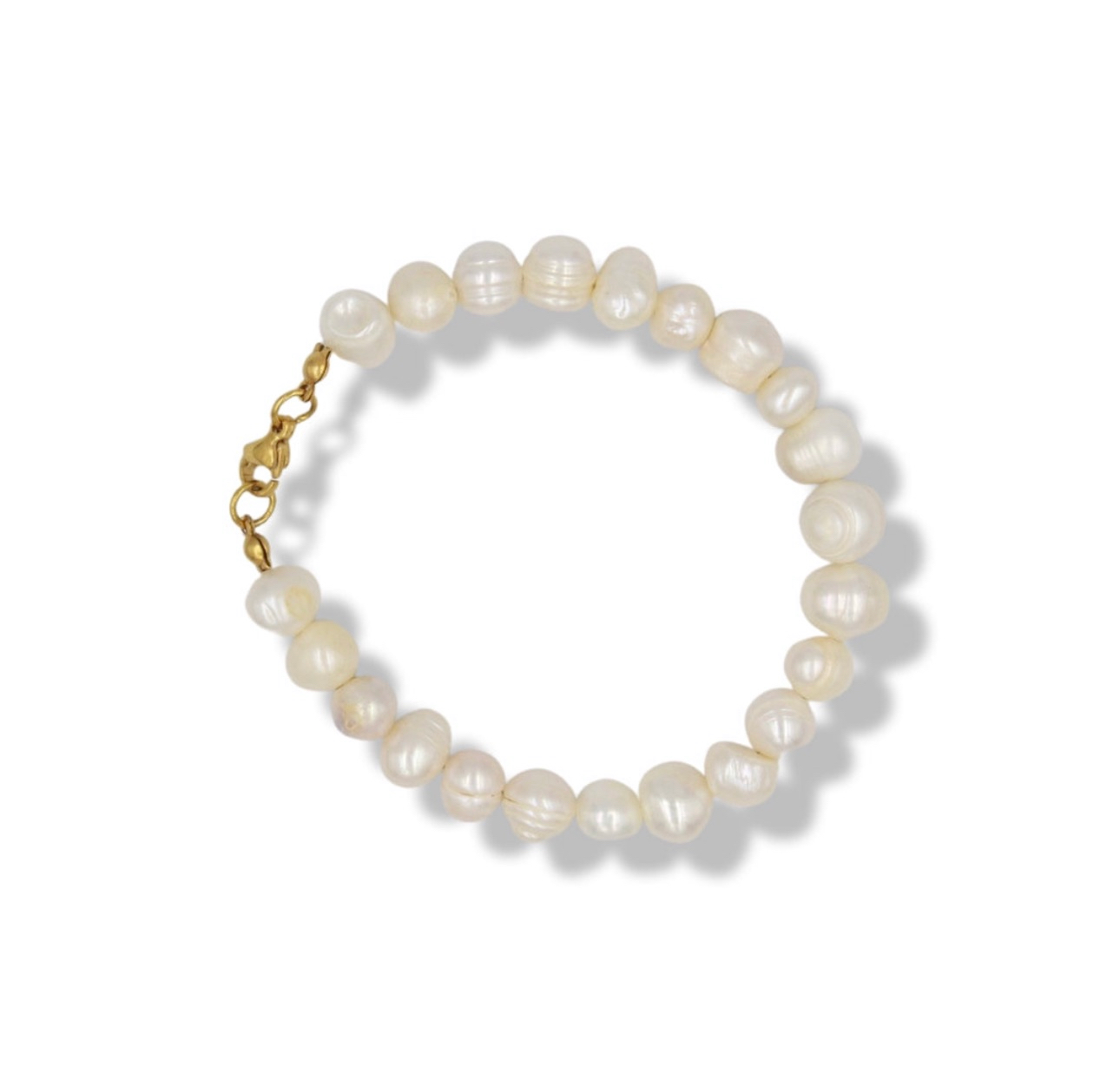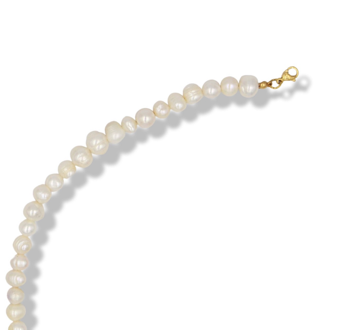 8 mm rice-shaped organic white freshwater pearls. Know your size? Select it. Not sure? Select our extendable one-size option.