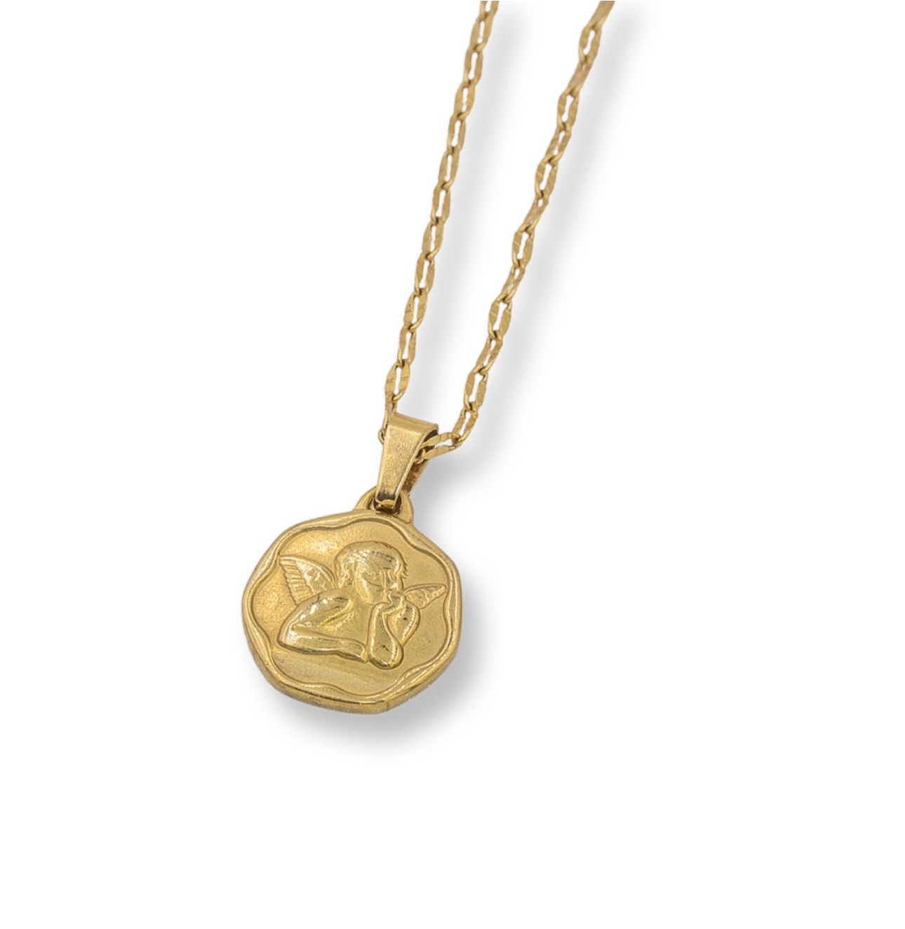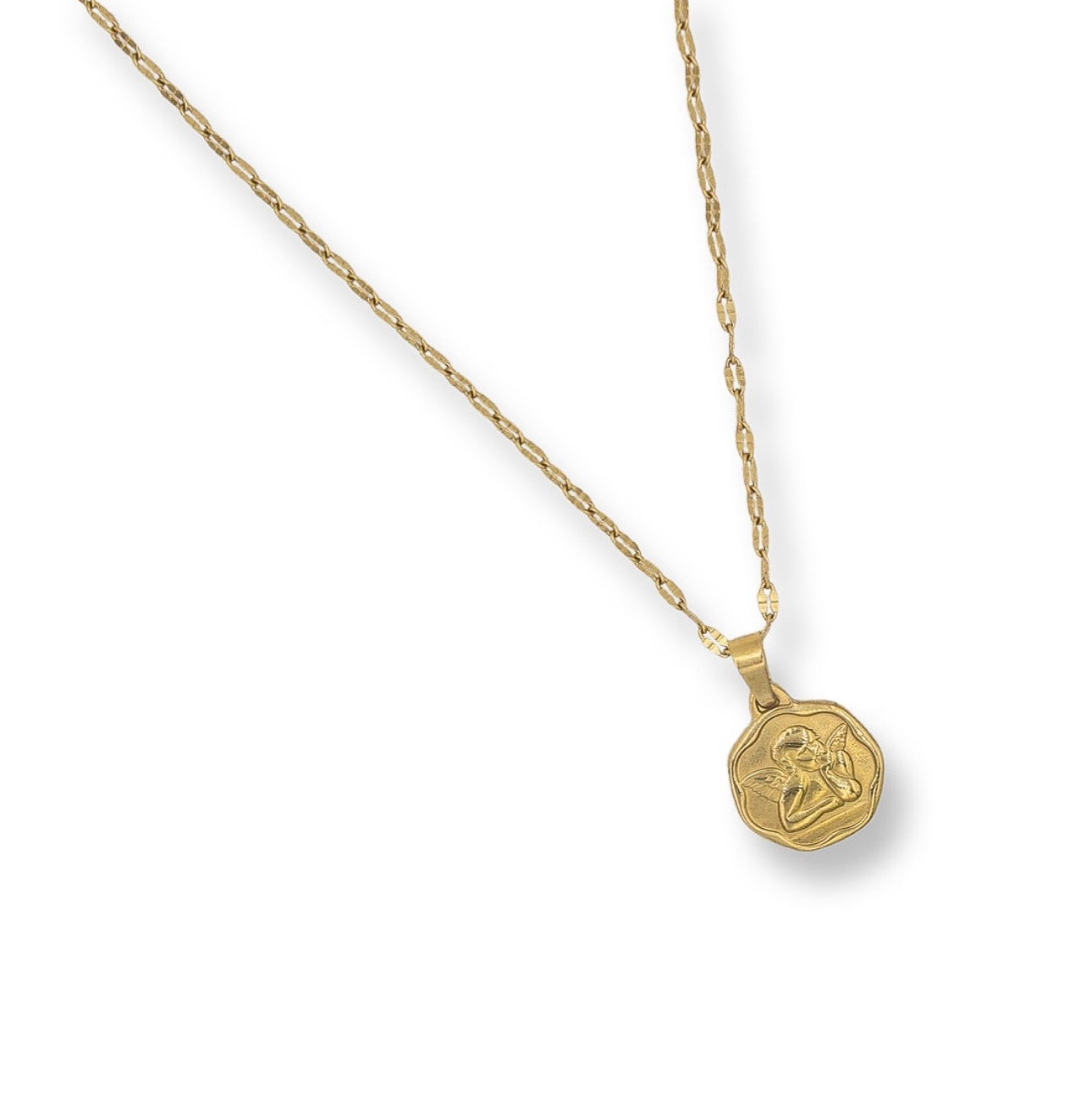 Description:Feel divinely protected with the Struck by Angels Necklace. Featuring a beautifully detailed angel coin pendant, this necklace is a...