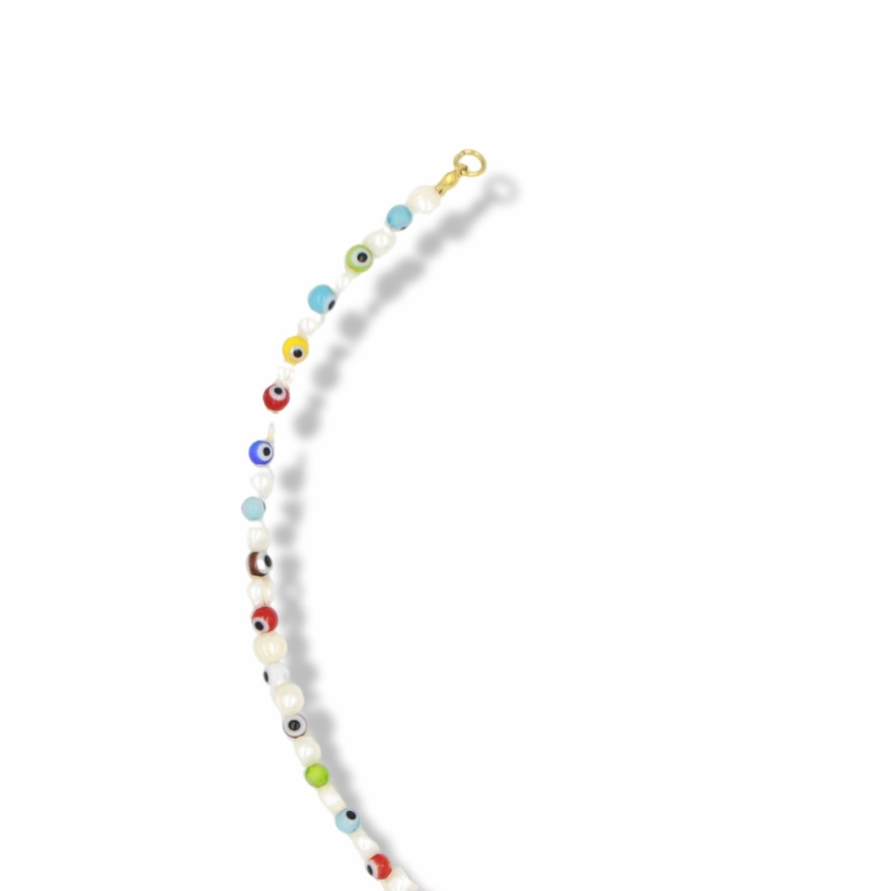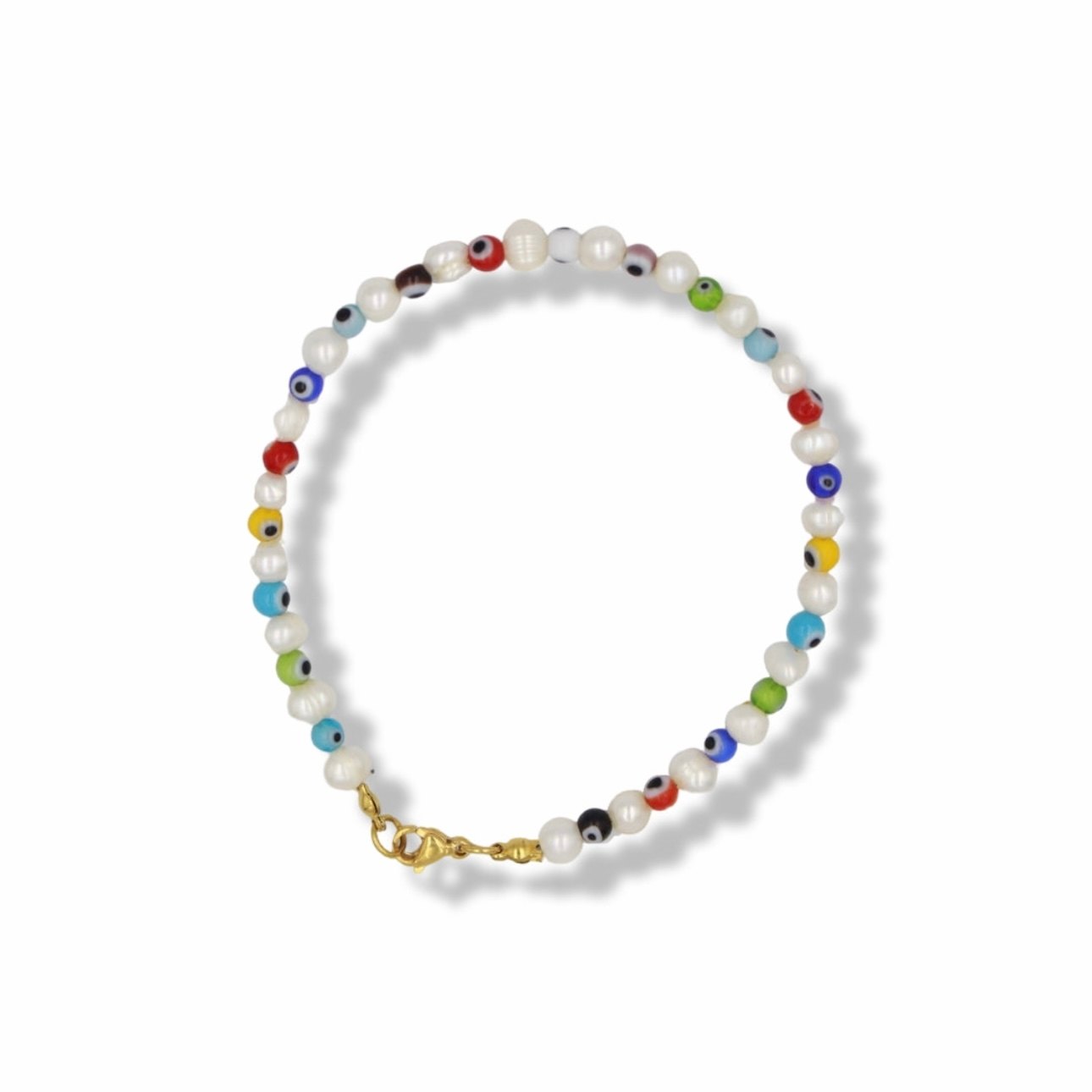 Safeguard your style and spirit with the Evil Eye Protector Bracelet, blending pearls with symbolic evil eye charms. Pearls enhance...