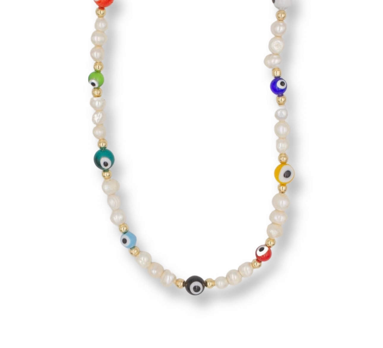 Evil Eyes Go Away Freshwater Pearl Necklace – 8MM
