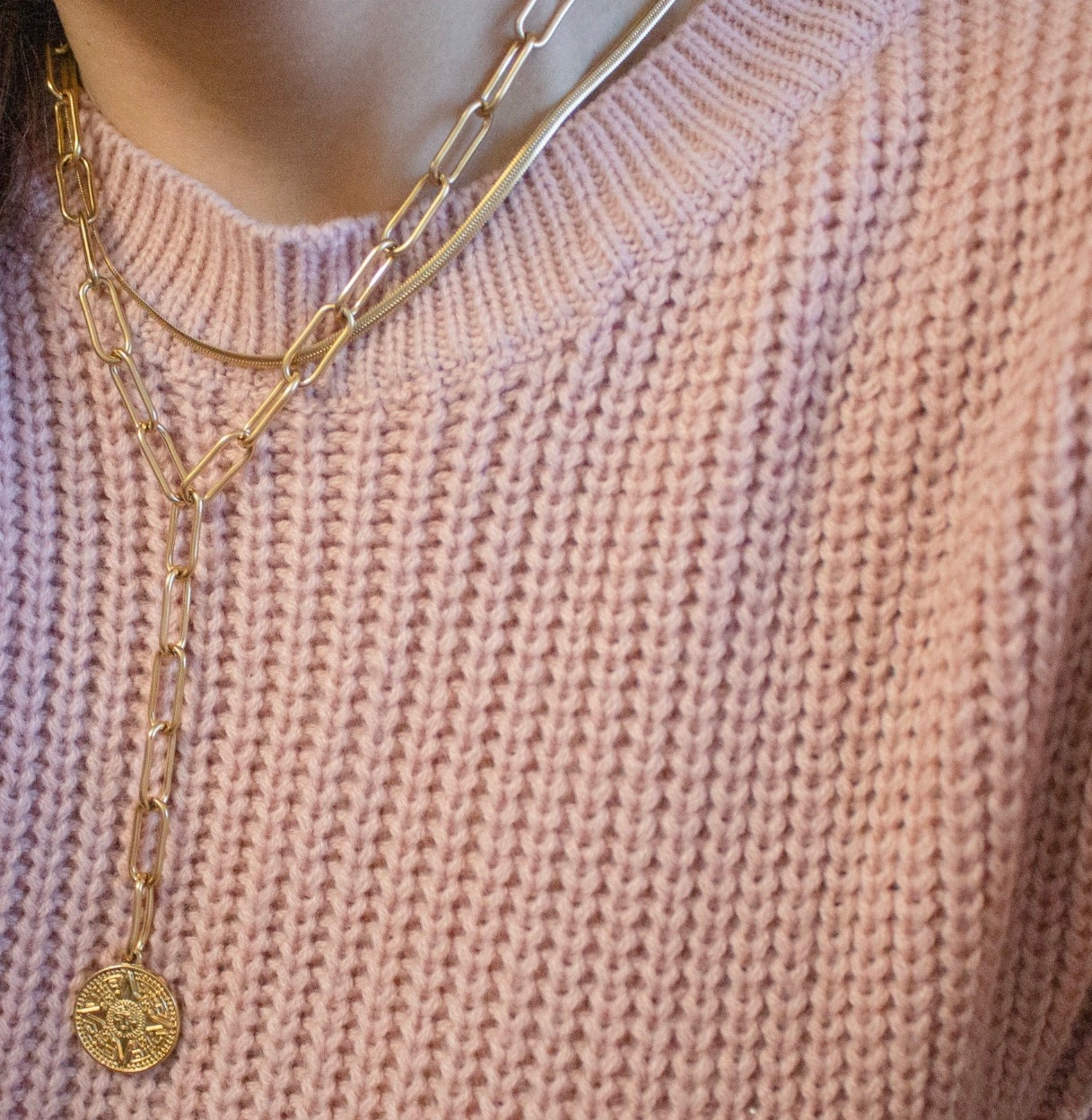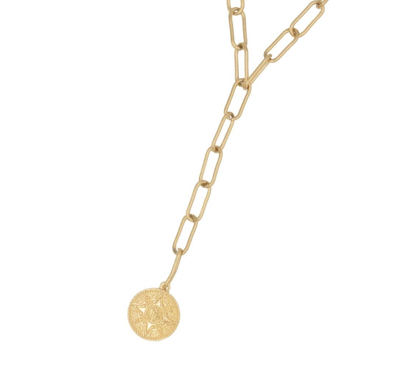 Golden Aztec Mayan Sun Calendar Coin Necklace