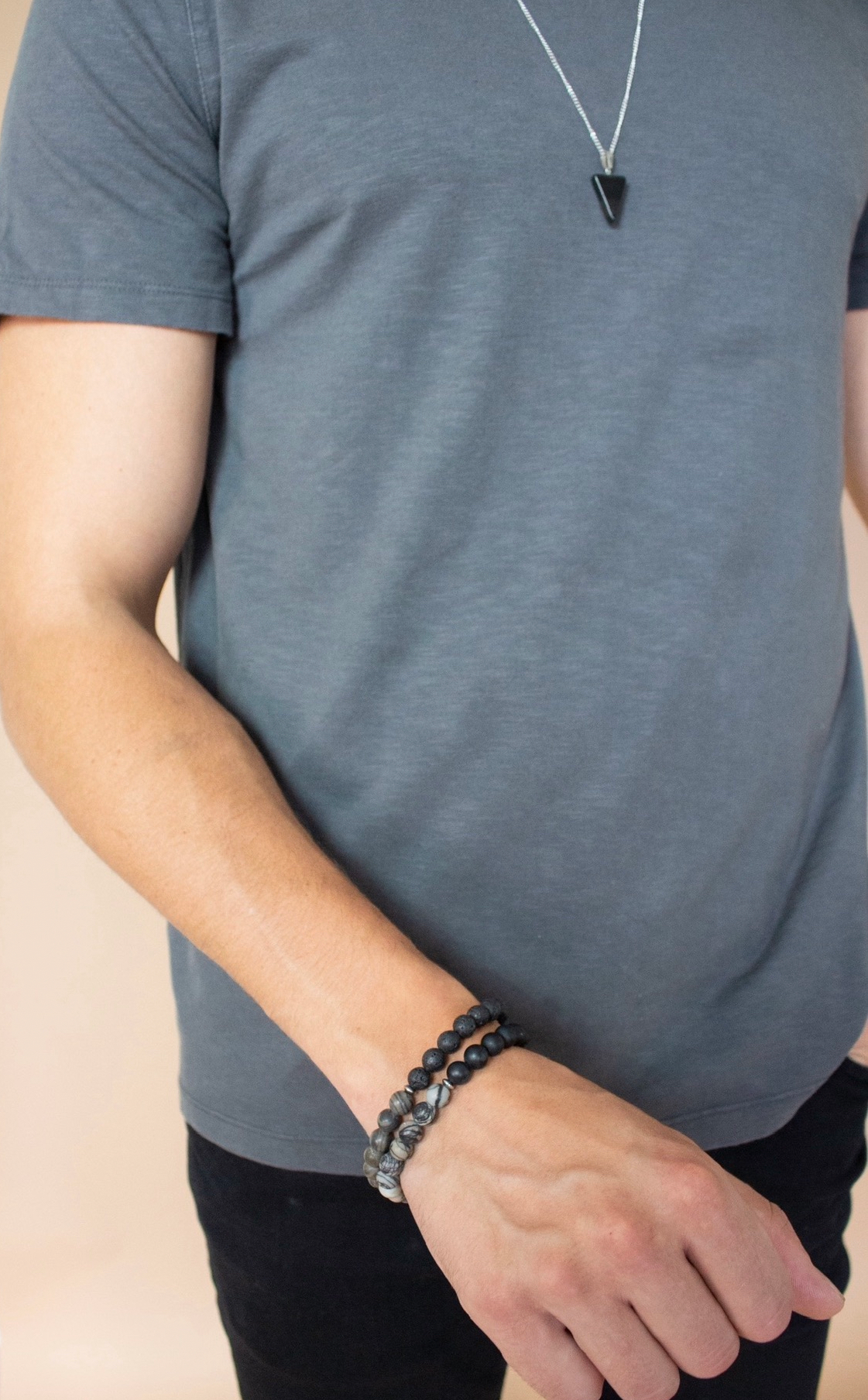 Grounded Spirit Bracelet – Picasso Marble + Onyx / Lava