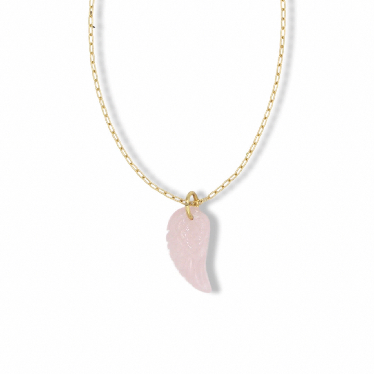 Carry the energy of love and compassion with the Love Angel Necklace, a divine piece featuring a Rose Quartz angel...