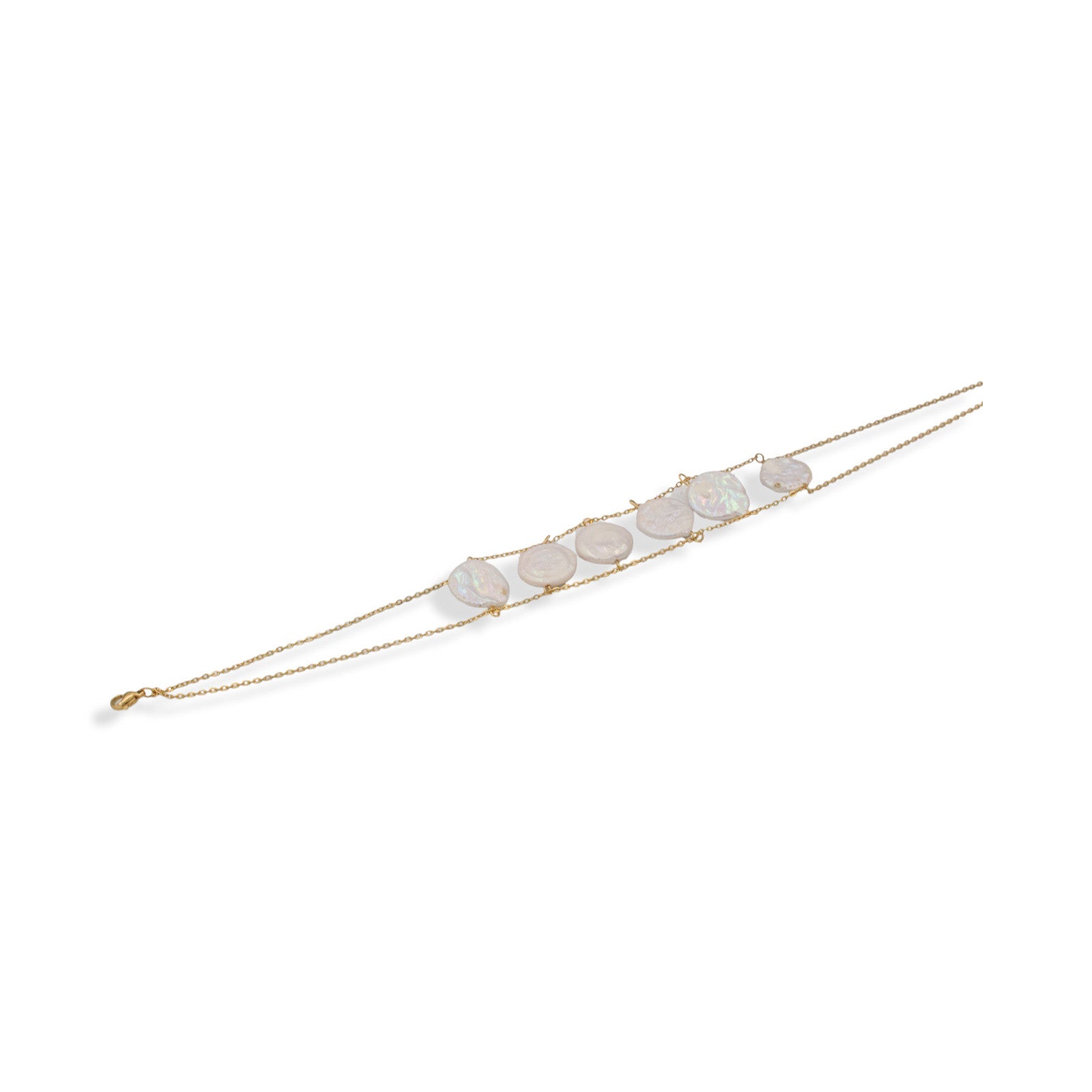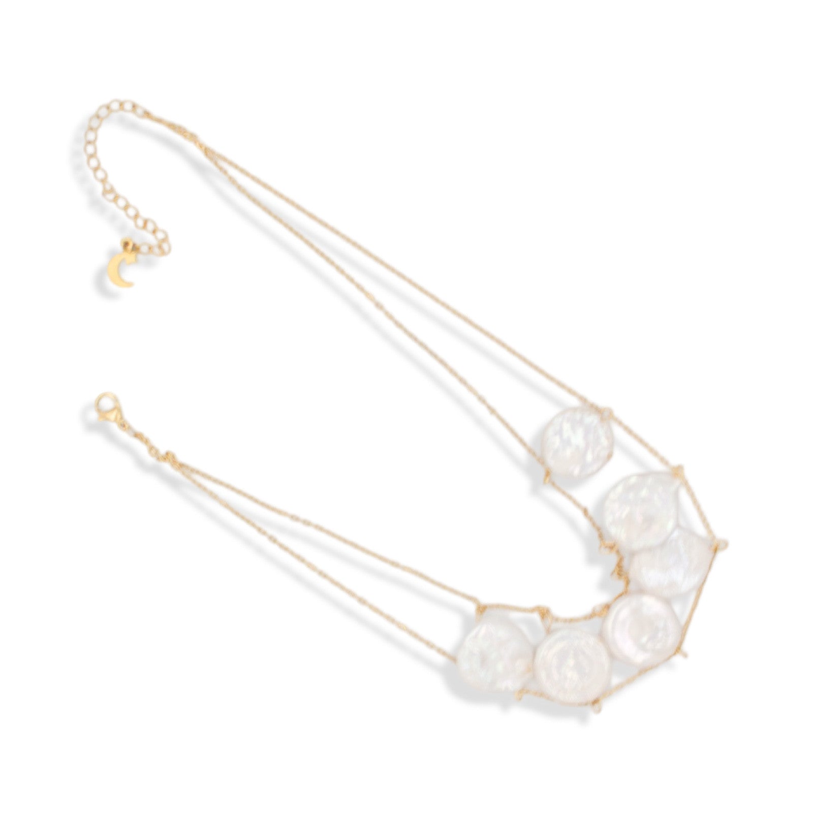 Step into the spotlight with this avant-garde freshwater pearl necklace—a bold statement of elegance and individuality. Featuring 10mm flat, iridescent...