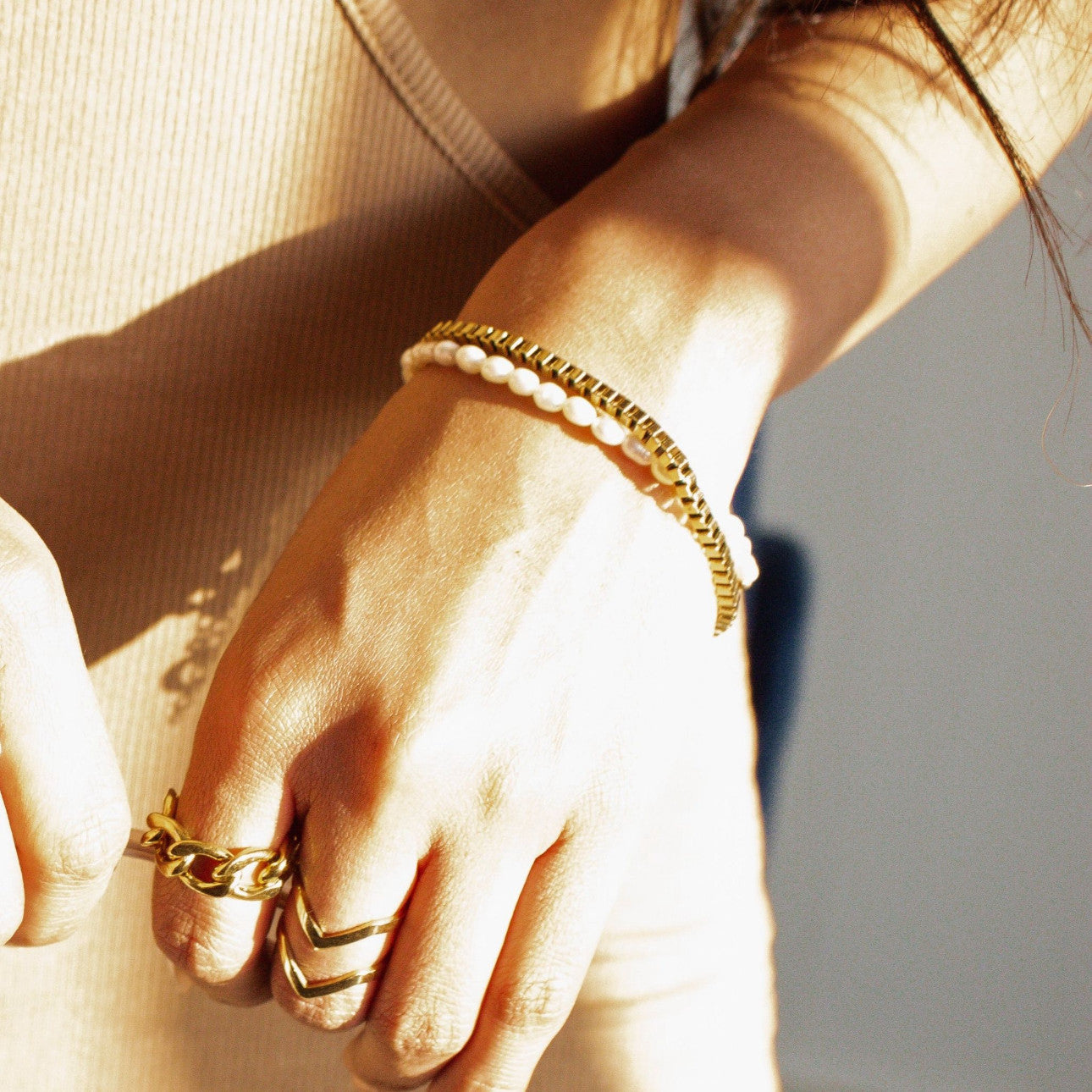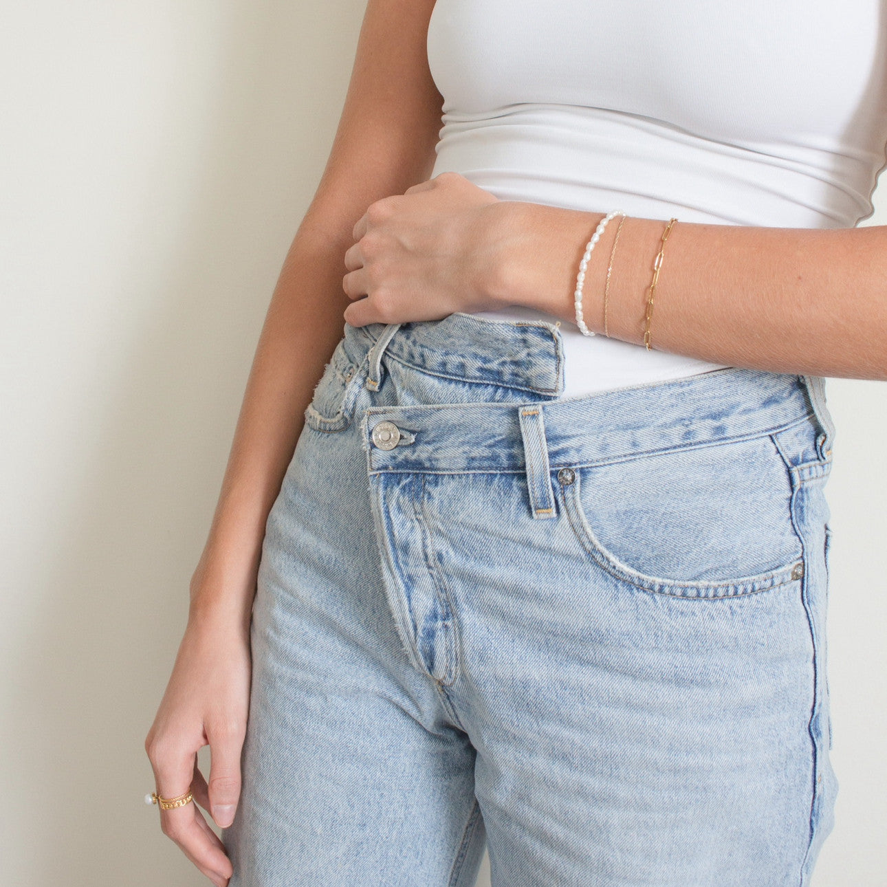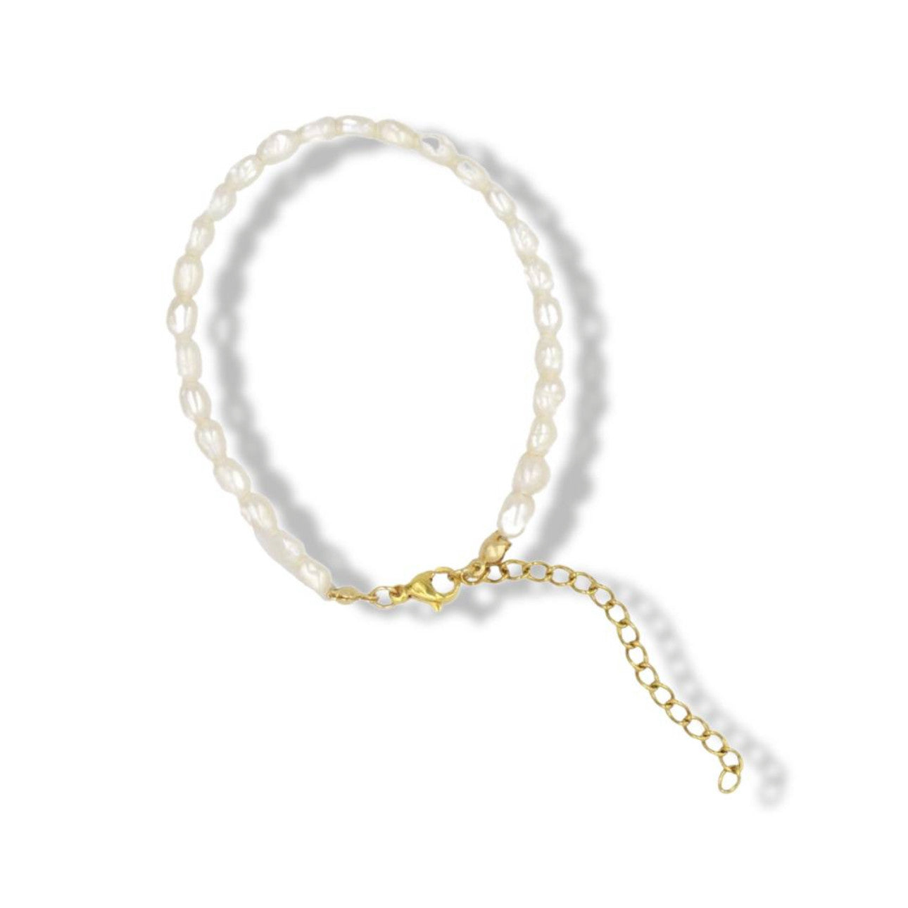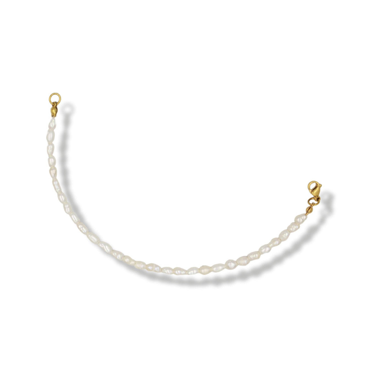 3-4mm rice-shaped organic white freshwater pearls. Know your size? Select it. Not sure? Select our extendable one-size option.