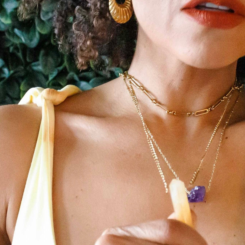 Harness the power of manifestation with the Overcome Citrine Crystal Necklace. Featuring a natural bullet-shaped citrine crystal, this piece exudes...
