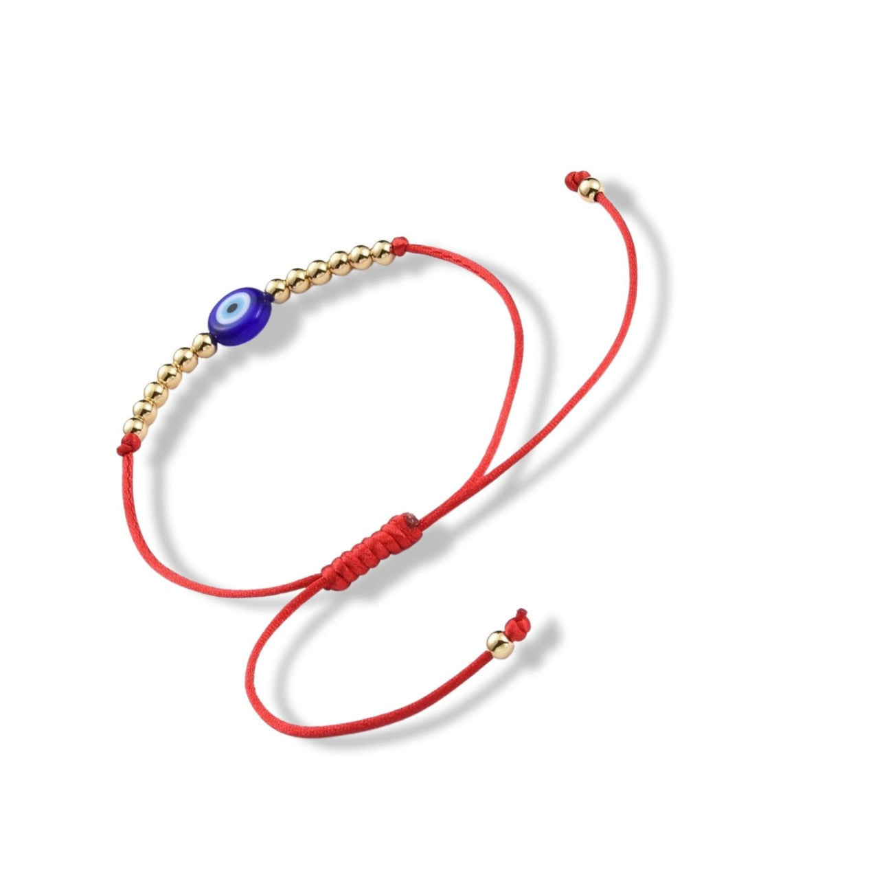 Crafted with intention and care, this meaningful bracelet combines the symbolism of the red thread and the protective evil eye....